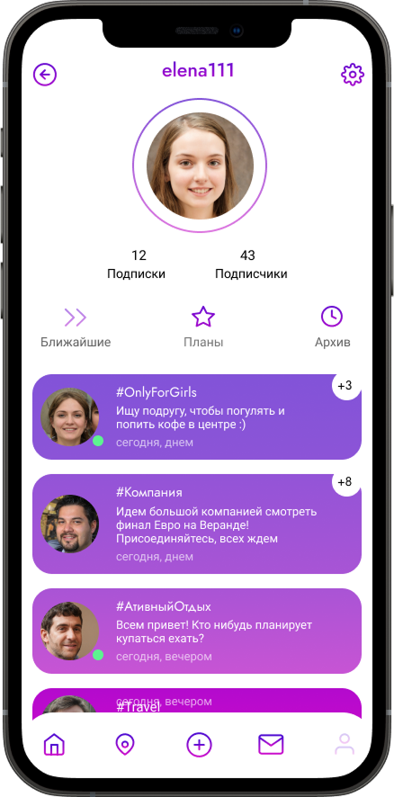Находи интересующие тебя события на главном экране и жми хочу пойти